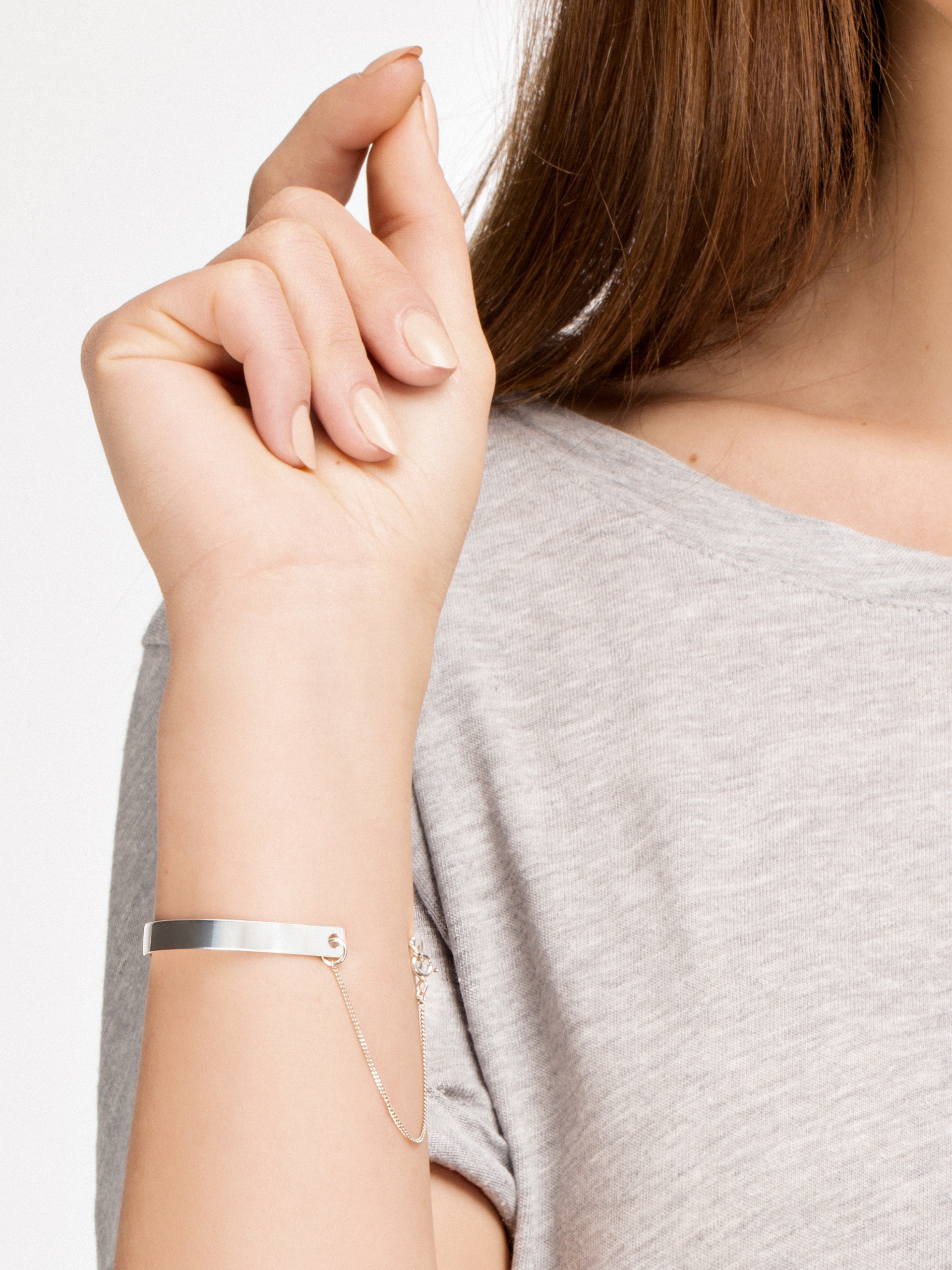 €59The bracelet has a creased form referring to the harmoniously folded cardboard. Multiple surfaces fancifully reflect light and make the bracelet look very attractive on the hand while maintaining its minimalistic style. Bracelet is put directly on the wrist, so it does not pass through the hand. The bracelet is made of sterling silver.