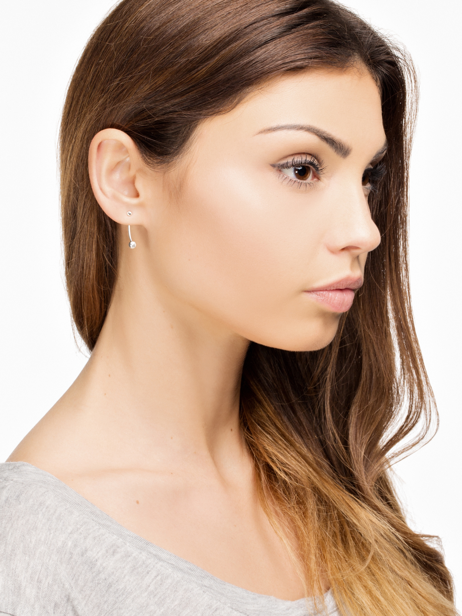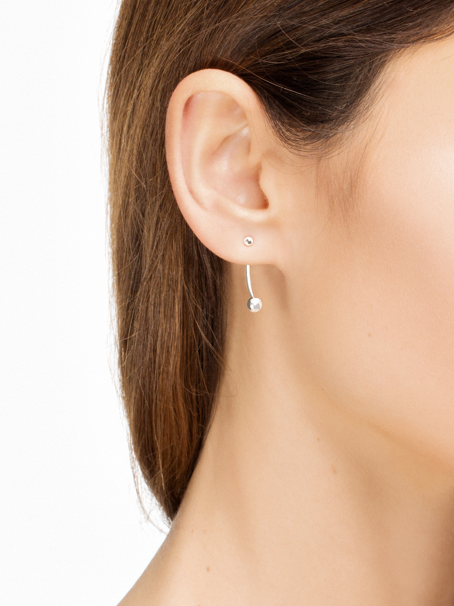 Earrings made of sterling silver. Earrings consist of a pair. Additionally each earing has two parts – it can be worn either as a stick or together with a decorative element attached to the ear from the back. Earring can be combined with similar items from other ‘moie’ collections. Earring dimension: 2,3 cm.