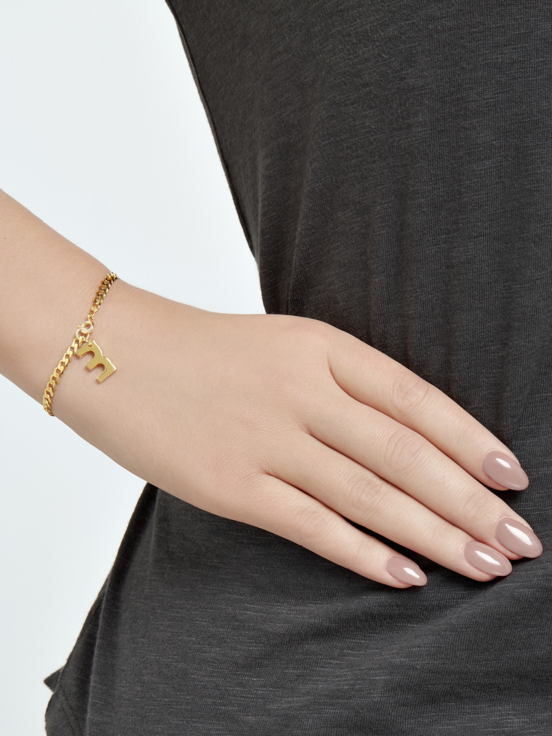 Bransoletka na grubym łańcuszku (typ pancerka) z zawieszką w formie logo ‘moie’. Bransoletka dostępna jest w 2 rozmiarach. Rozmiar S ma długość 15cm, rozmiar M ma długość 17cm. Bransoletka wykonana ze złota Vermeil.