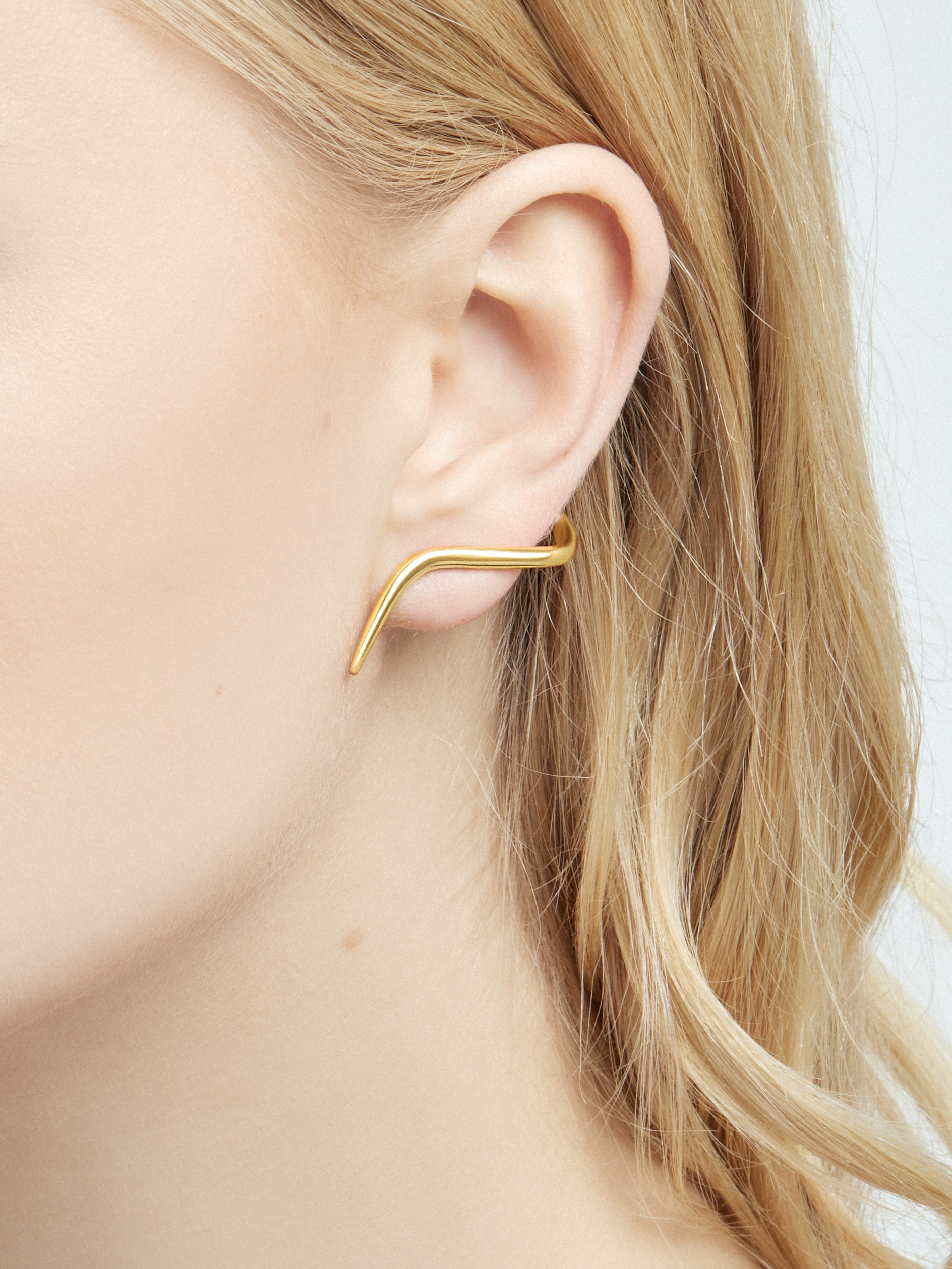 Dodaj do ulubionychMinimalistyczne kolczyki zapinane na sztyfty w kształcie oplatającym ucho. Kolczyki wykonane są ze złota Vermeil.