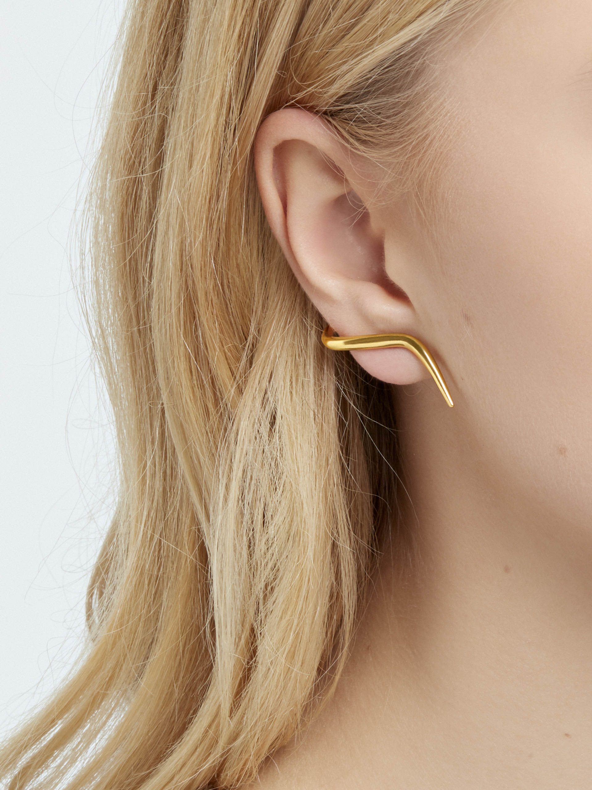 Złote nausznice kolczyki składają się z pary niezależnych kolczyków. Kolczyki mają sztyfty i zakłada się w sposób klasyczny na ucho. Kształt kolczyka sprawia wrażenie, jakby kolczyki były niezależnie założonymi nausznicami. Nausznice mają formę dyskretnie oplatającą ucho przez co są jednocześnie eleganckie ale też pozwalają wyróżnić się z tłumu. Produkt ten jest częścią kolekcji Moie Essentials. Kolekcja ta to minimalizm w biżuterii ponad wszystko, czyli to co w Moie kochamy najbardziej. Wymiar złotych nausznic kolczyków wynosi ok. 3,5 cm. Złote nausznice kolczyki wykonane są ze złota Vermeil. Biżuteria ta charakteryzuje się długą żywotnością powłoki złocenia. Złoto idealnie łączy się w kompozycje z dodatkami ze srebra i różowego złota. Produkt ten dostępny jest również w srebrze i różowym złocie i znajduje się tutaj.