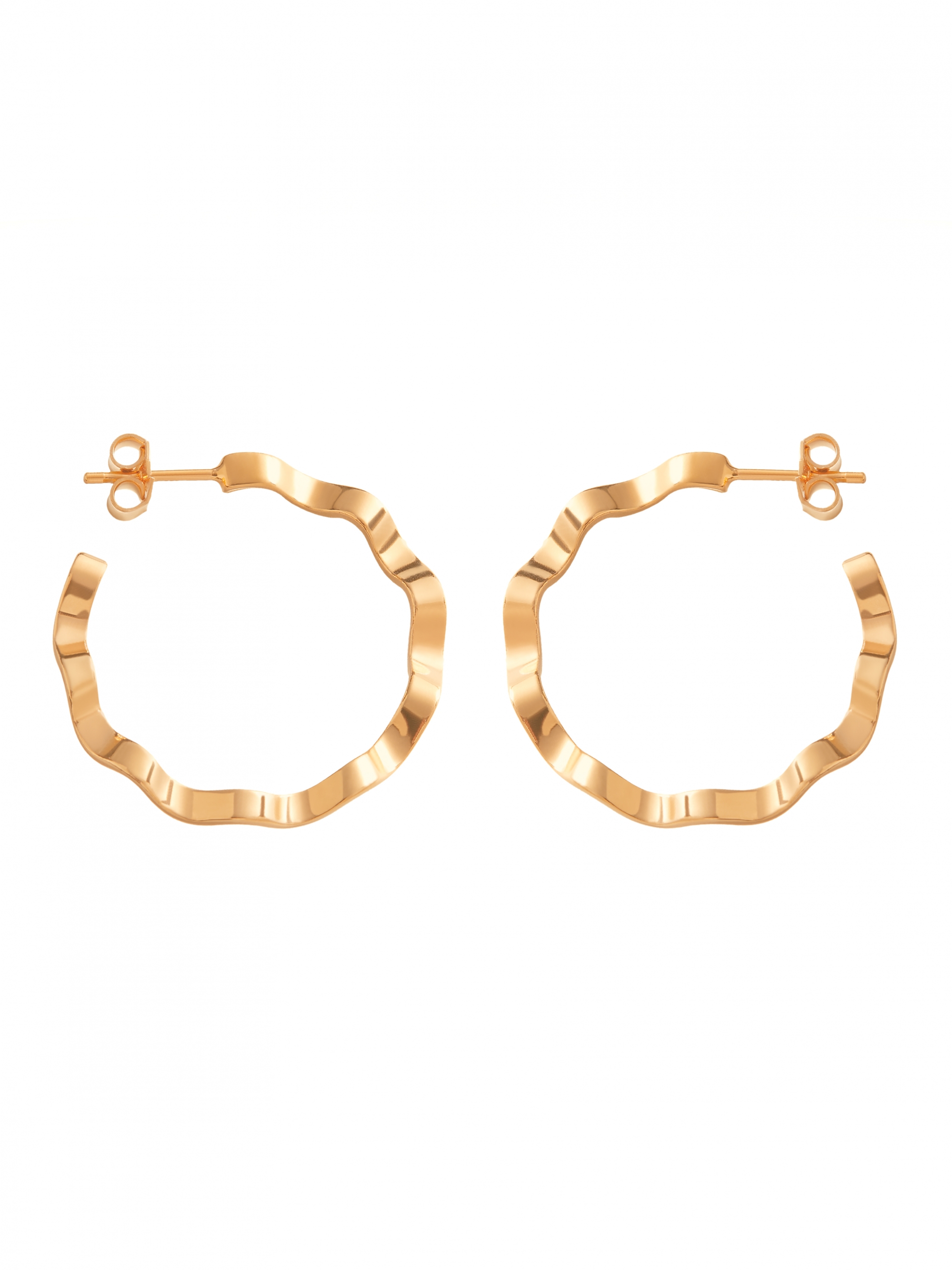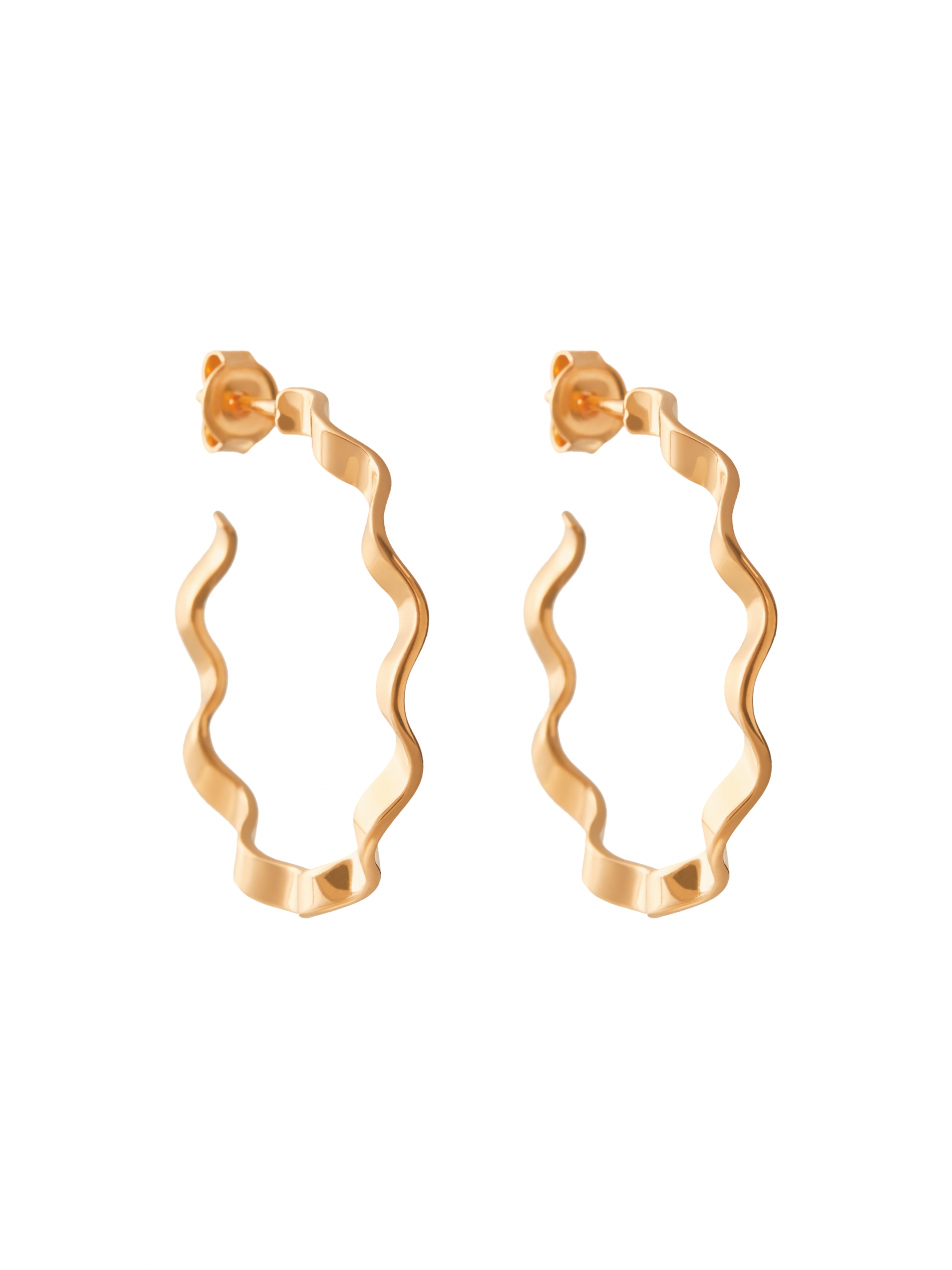Dodaj do ulubionychKolczyki – symetryczne kółka. Kolczyki mają kształt przypominający wygiętą falę. Kolczyki zapinane na sztyfty. Średnica kolczyków: ok. 3 cm. Produkt wykonany ze złota Vermeil.