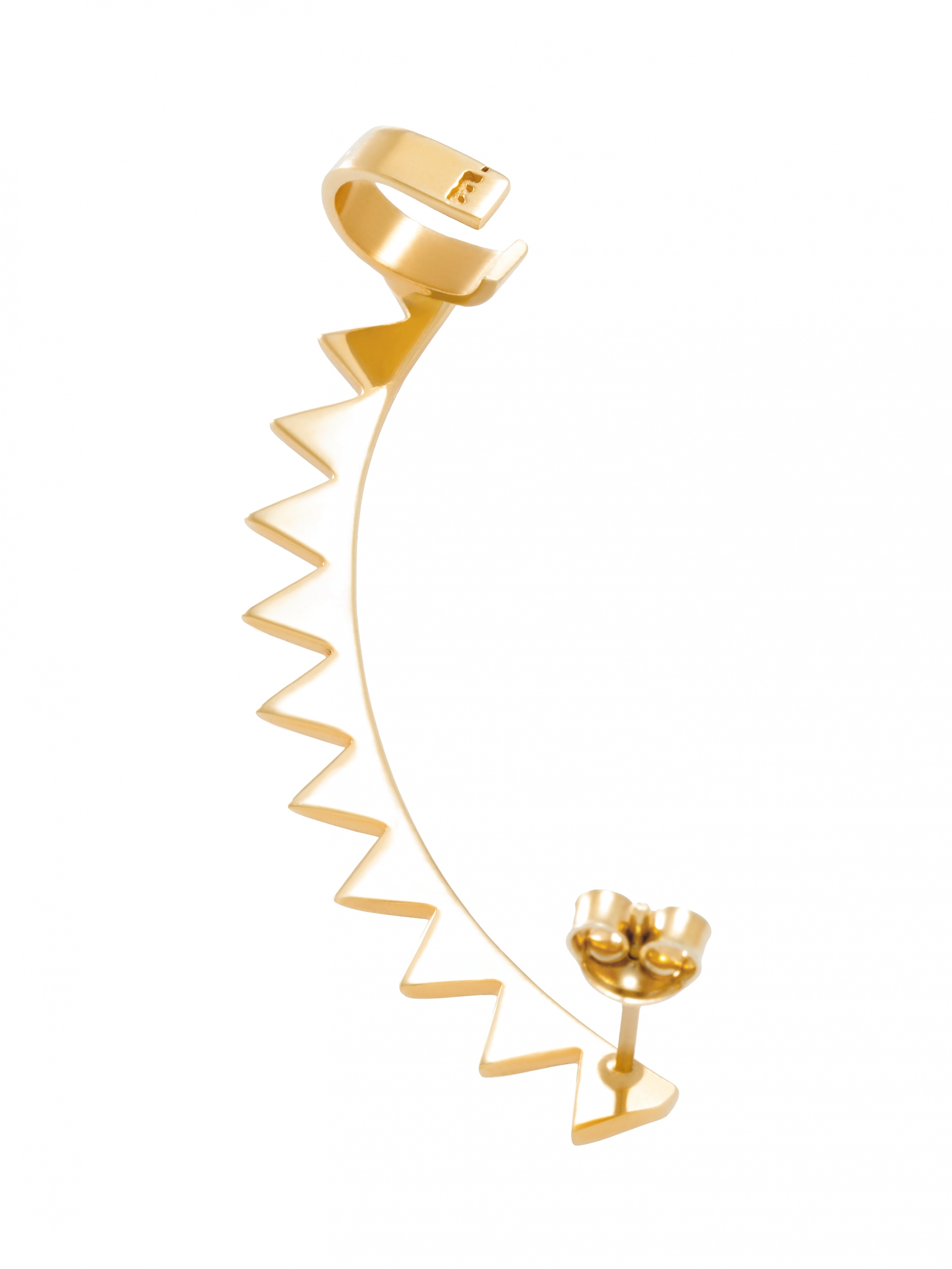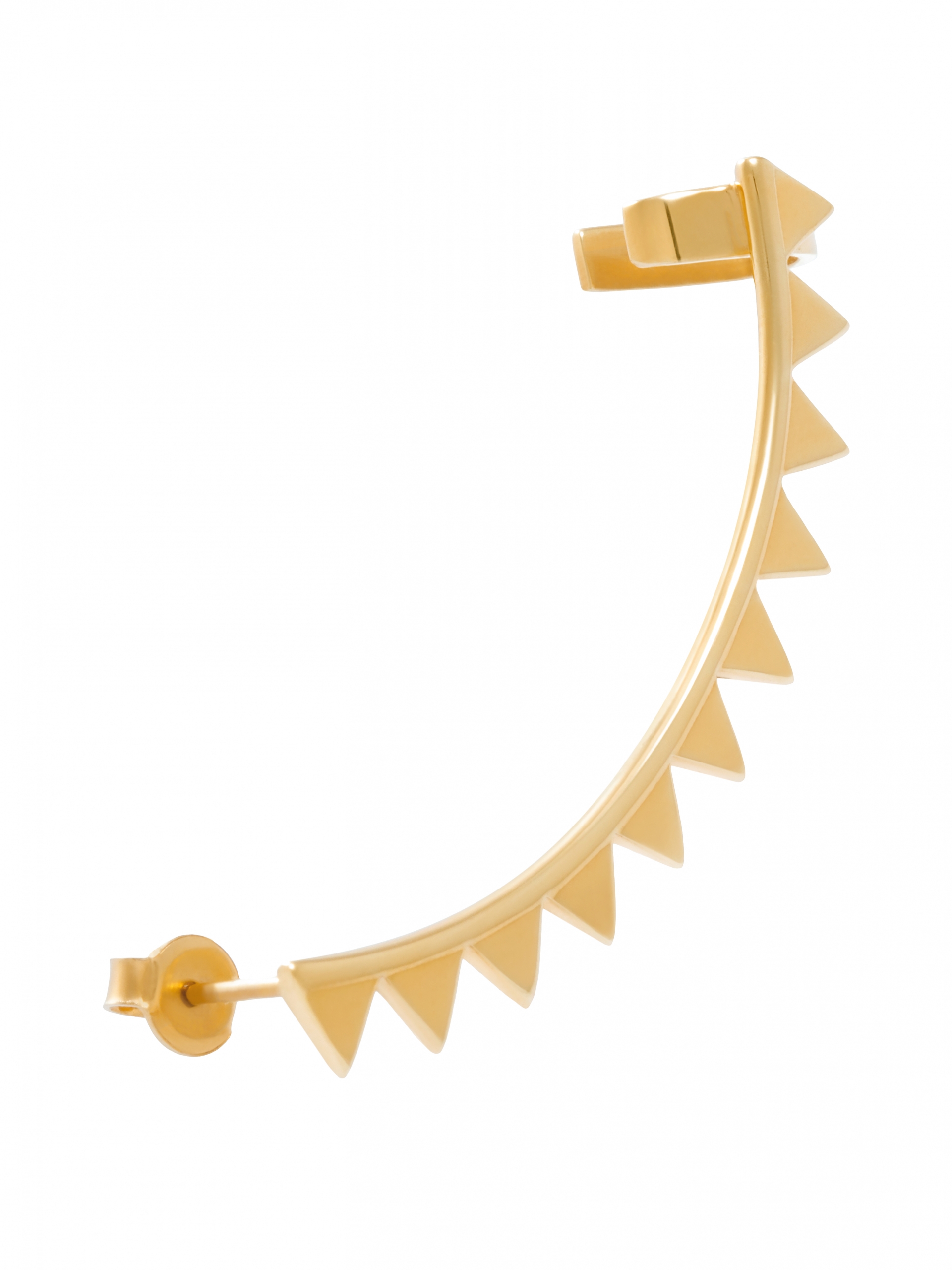 Nausznica z trójkącikami ozdabiająca całe ucho. Nausznica posiada sztyft z zapięciem i klips utrzymujący biżuterię prawidłowo na uchu. Nausznica dostępna w wariancie na lewe lub prawe ucho. Wymiar: 5 cm. Produkt wykonany ze złota Vermeil.